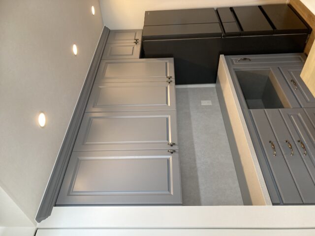 結果として、空間全体が上品にまとまり、クラシック要素が程よく引き立つキッチン背面収納に仕上がりました。